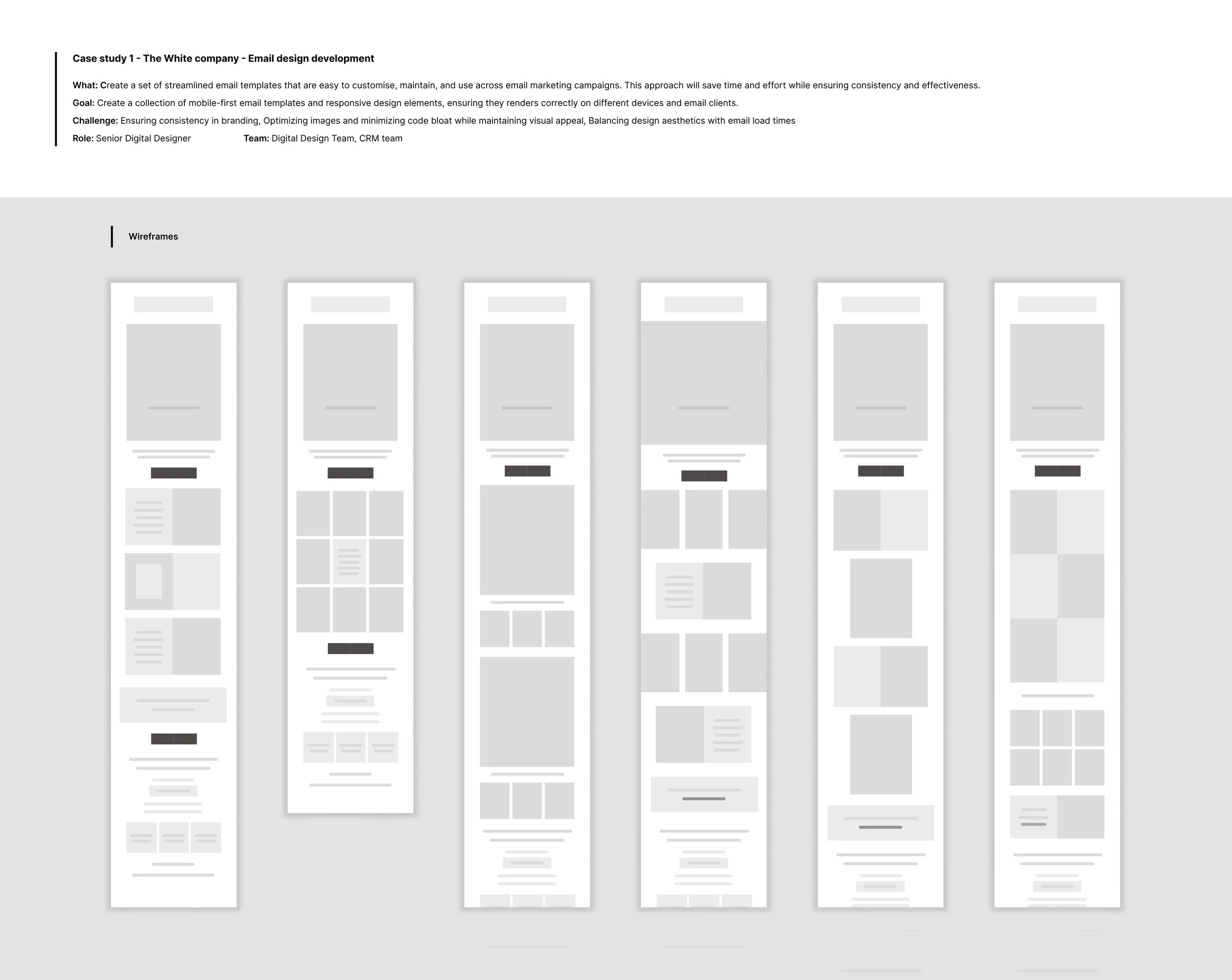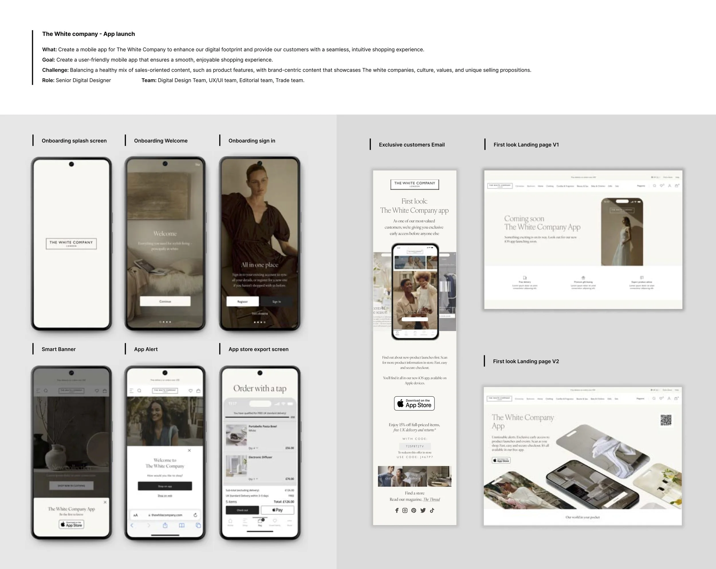 At The White Company, the volume of content going out across social, email, and web every week is huge - and keeping it all consistent while moving at speed was a real challenge. I developed a design system that tackled this head-on: a framework of reusable templates, type styles, layout grids, and asset formats built in Figma, so any designer on the team could produce on brand content quickly without reinventing the wheel each time. The system covered email modules, social post templates, and web banners - enough structure to keep things cohesive, enough flexibility to let each piece of content feel relevant to its moment.
